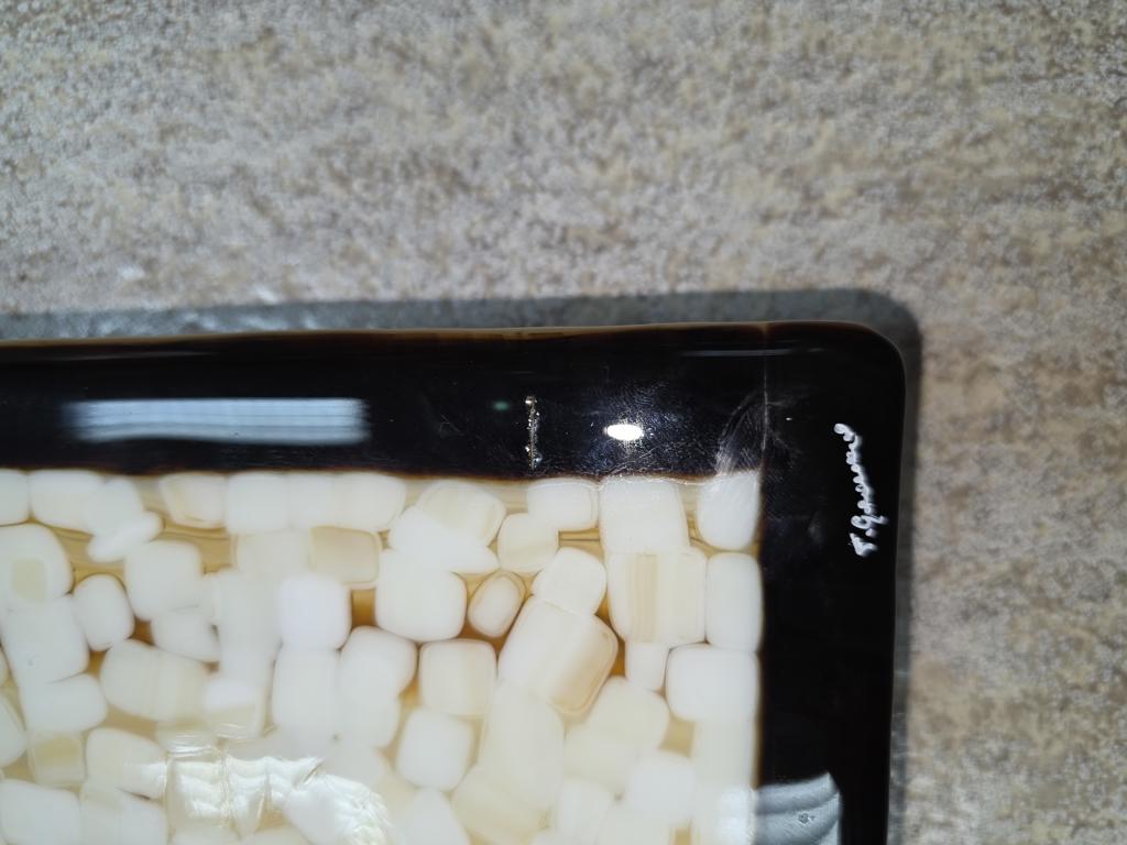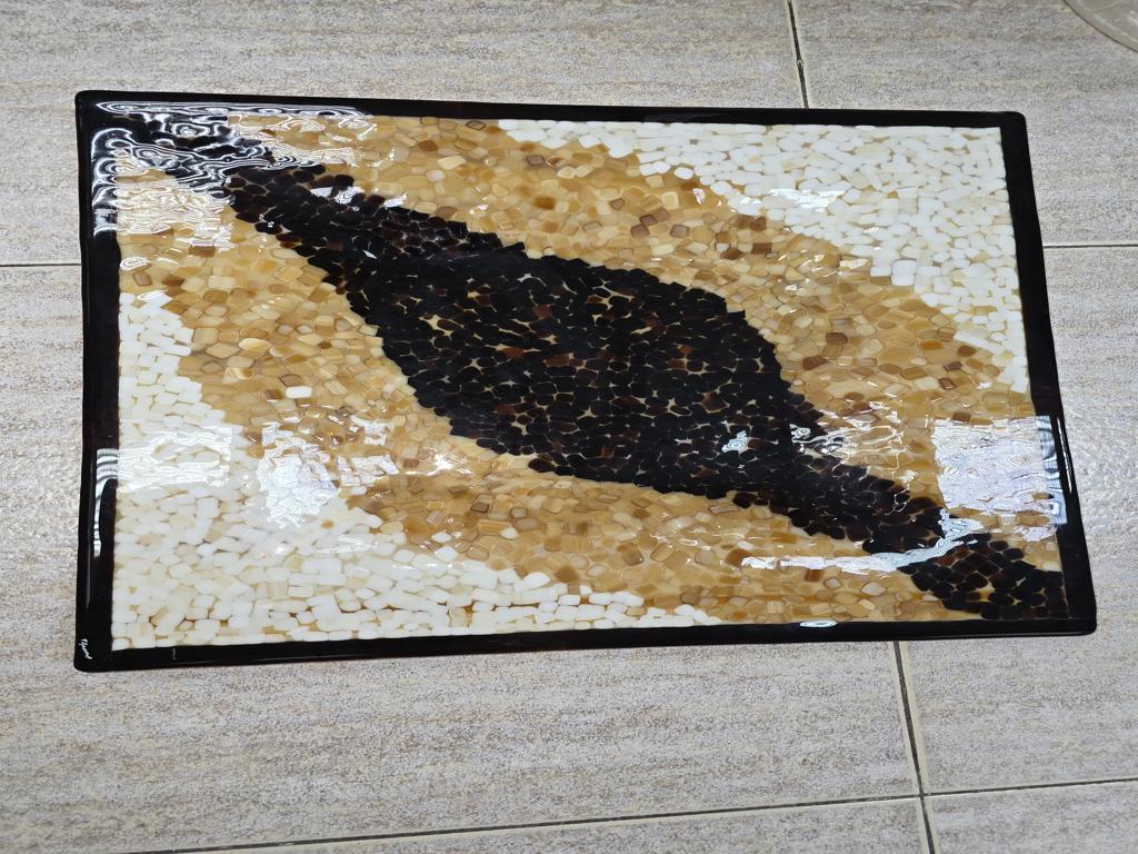 Centro de mesa de cristal estilo mosaico en tonos negro ,beige,blanco.